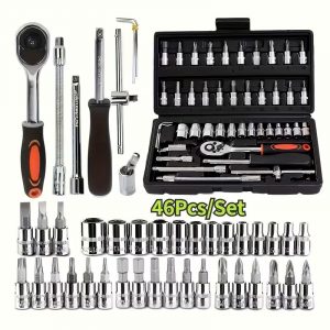 46pcs Automotive Repair Tool Set, Carbon Steel Ratchet Wrench Socket Toolbox, Durable Metal Home Tool Kit, a Comprehensive Set of Repair Tools Suitable for Mechanics And Enthusiasts